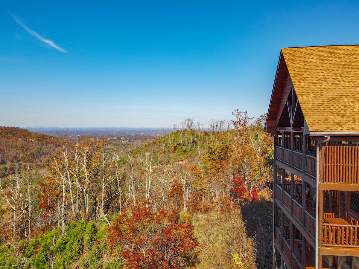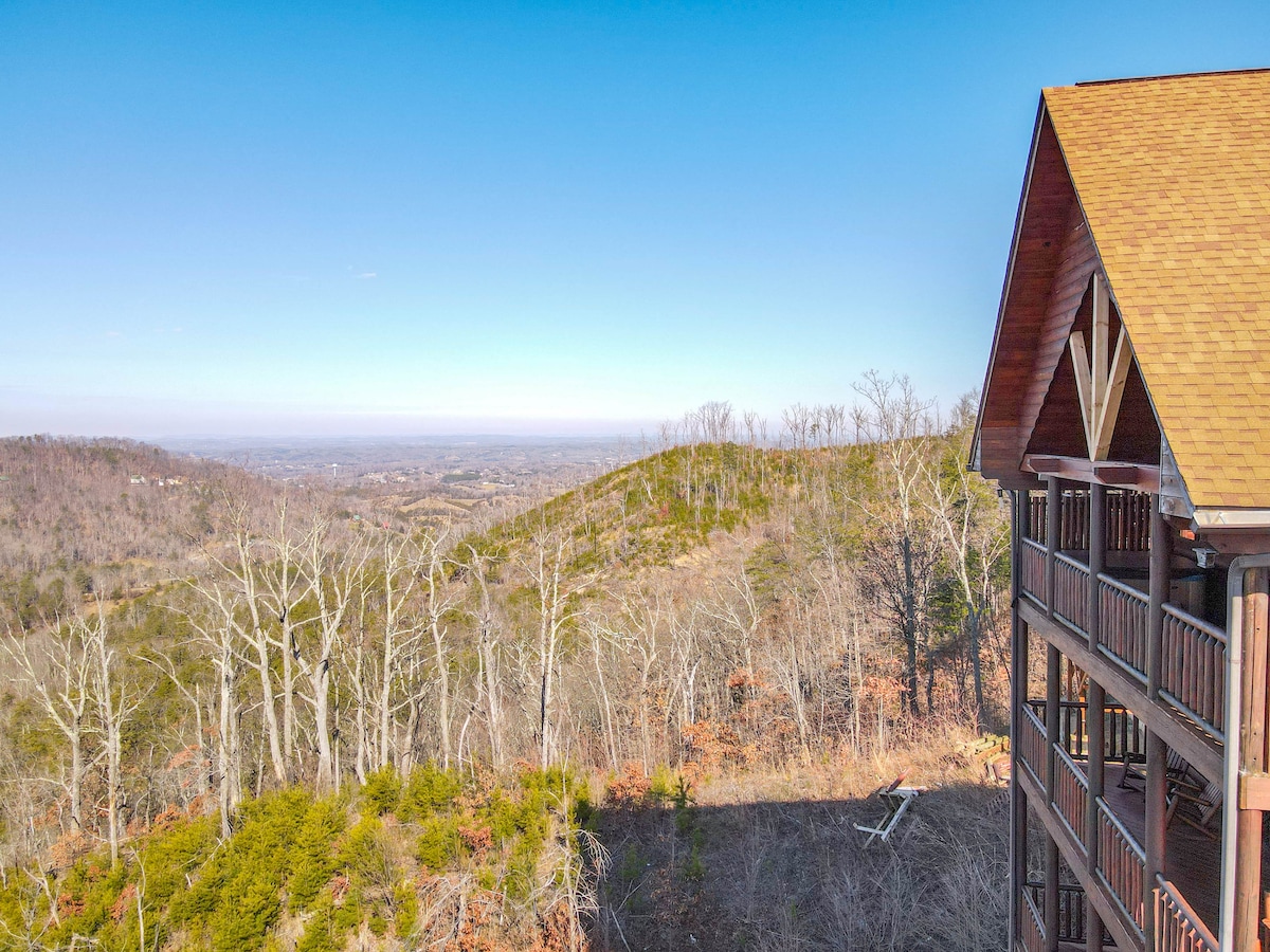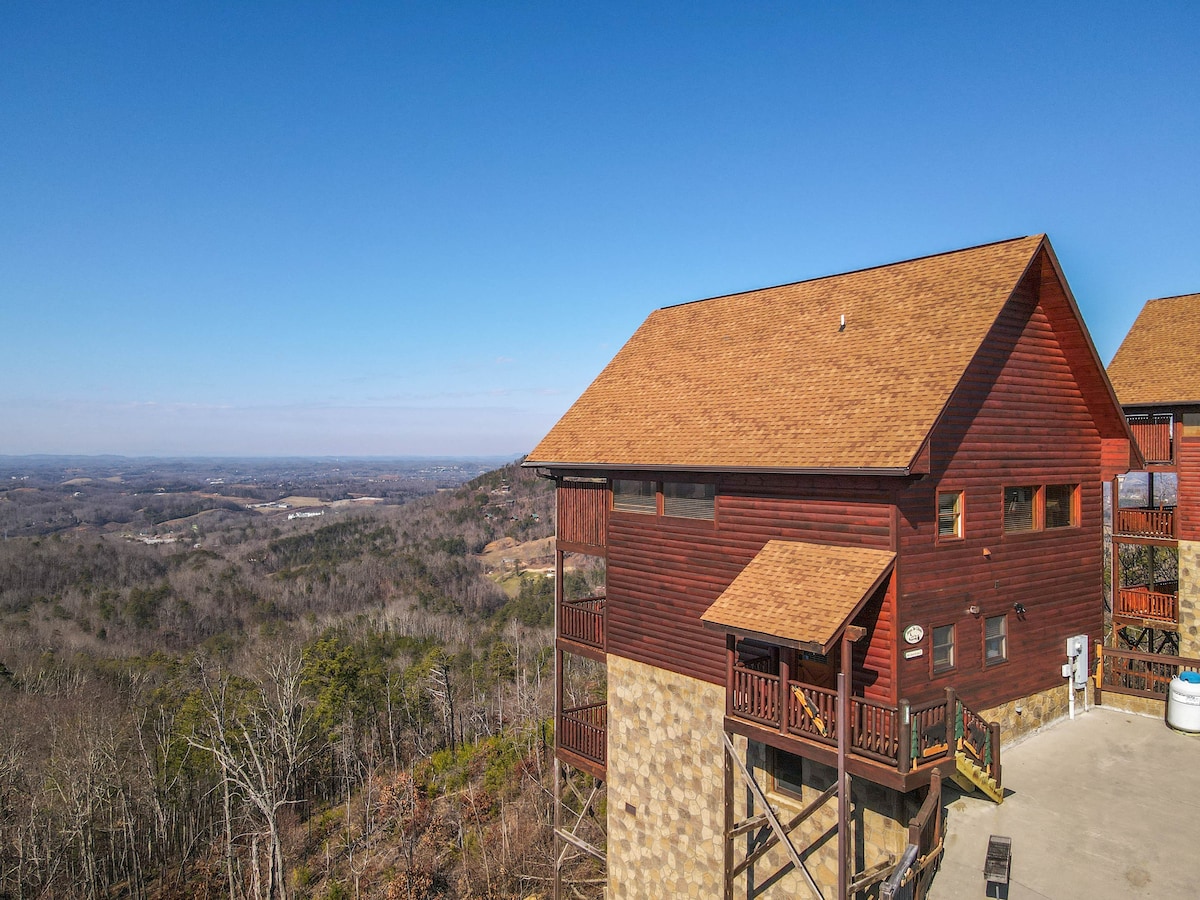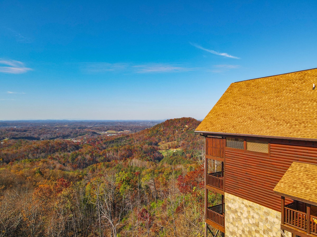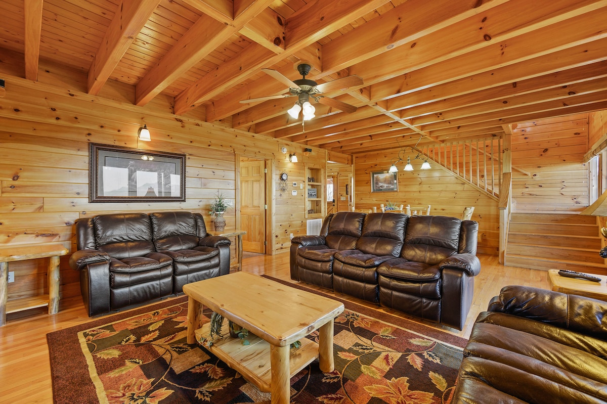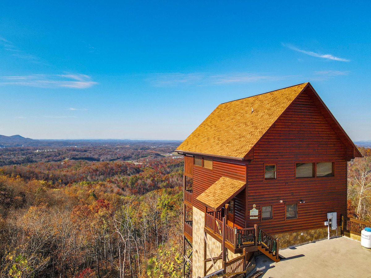 The spaceThe main level consists of the living area, well equipped kitchen with stainless steel appliances, dining area and one of the master bedrooms and bath. Downstairs you will find 2 additional master bedrooms each with private bath. The downstairs bedrooms are connected with a seating area with a desk for any work/school that may be required. The top floor is where you go to play. Power Putt golf arcade game lets everyone compete at Putt Putt golf without leaving the cabin. Also play on the pool table, 60 game retro arcade and darts. Futon in the loft provides extra sleeping for the kids or kids at heart. This floor also has the other master bedroom with a private fireplace and jacuzzi tub. Step out on the top deck and find the porch swing and hot tub looking over Pigeon Forge.