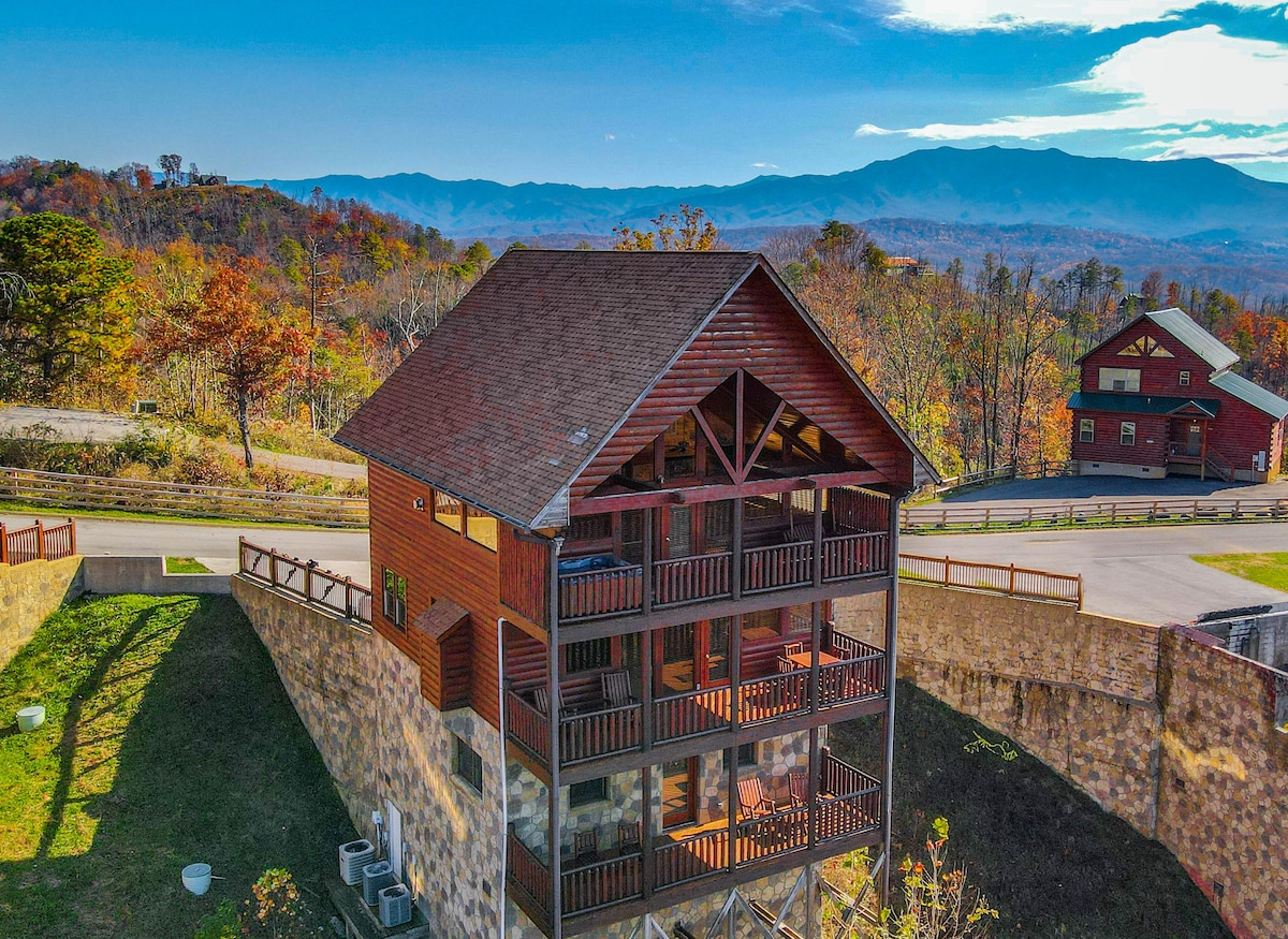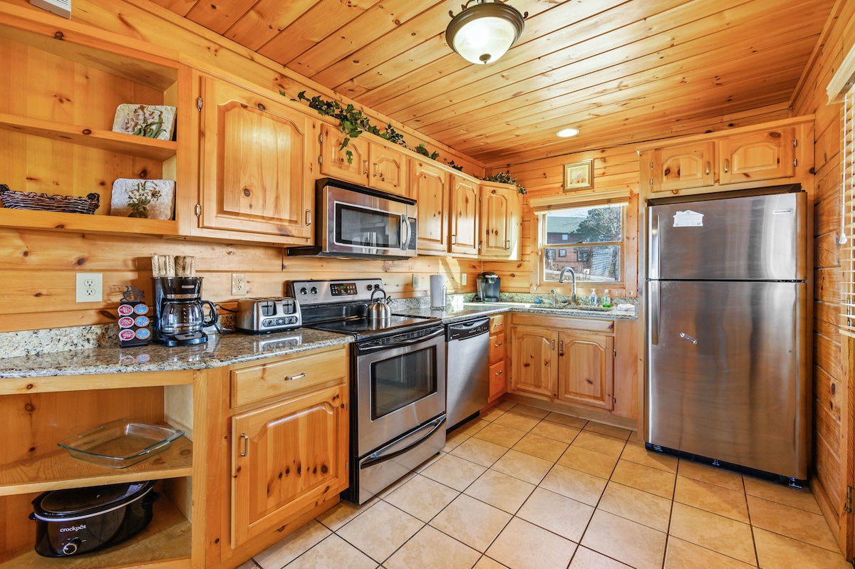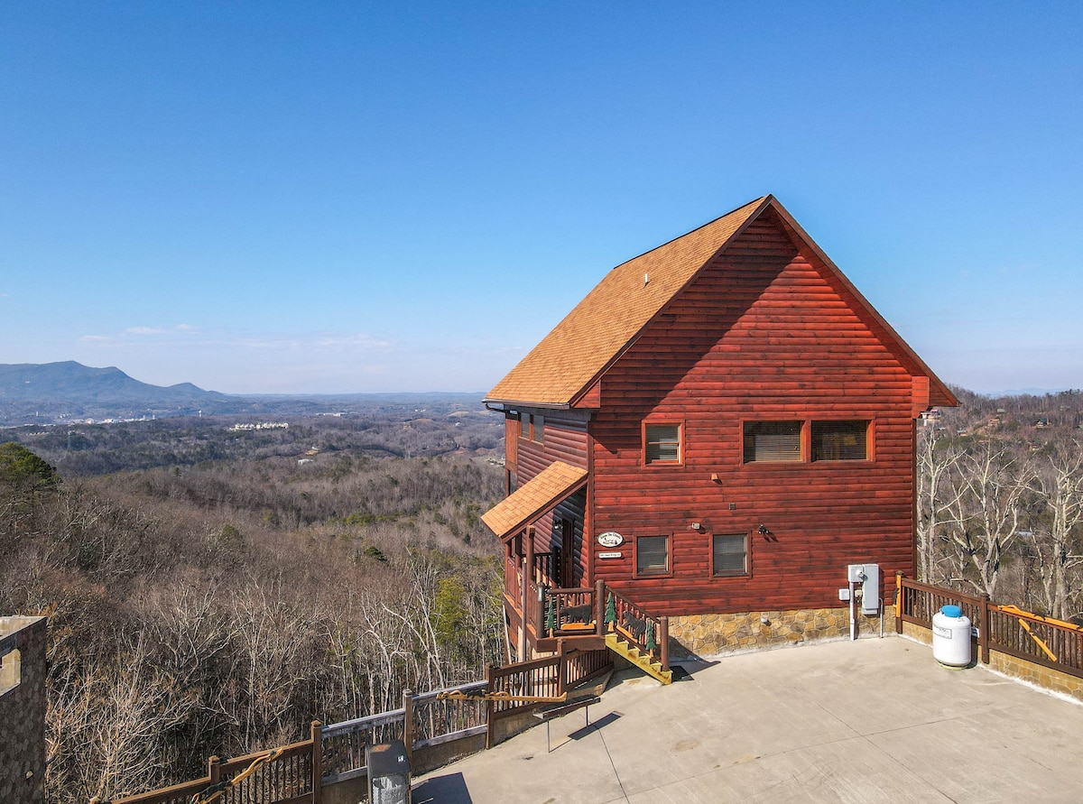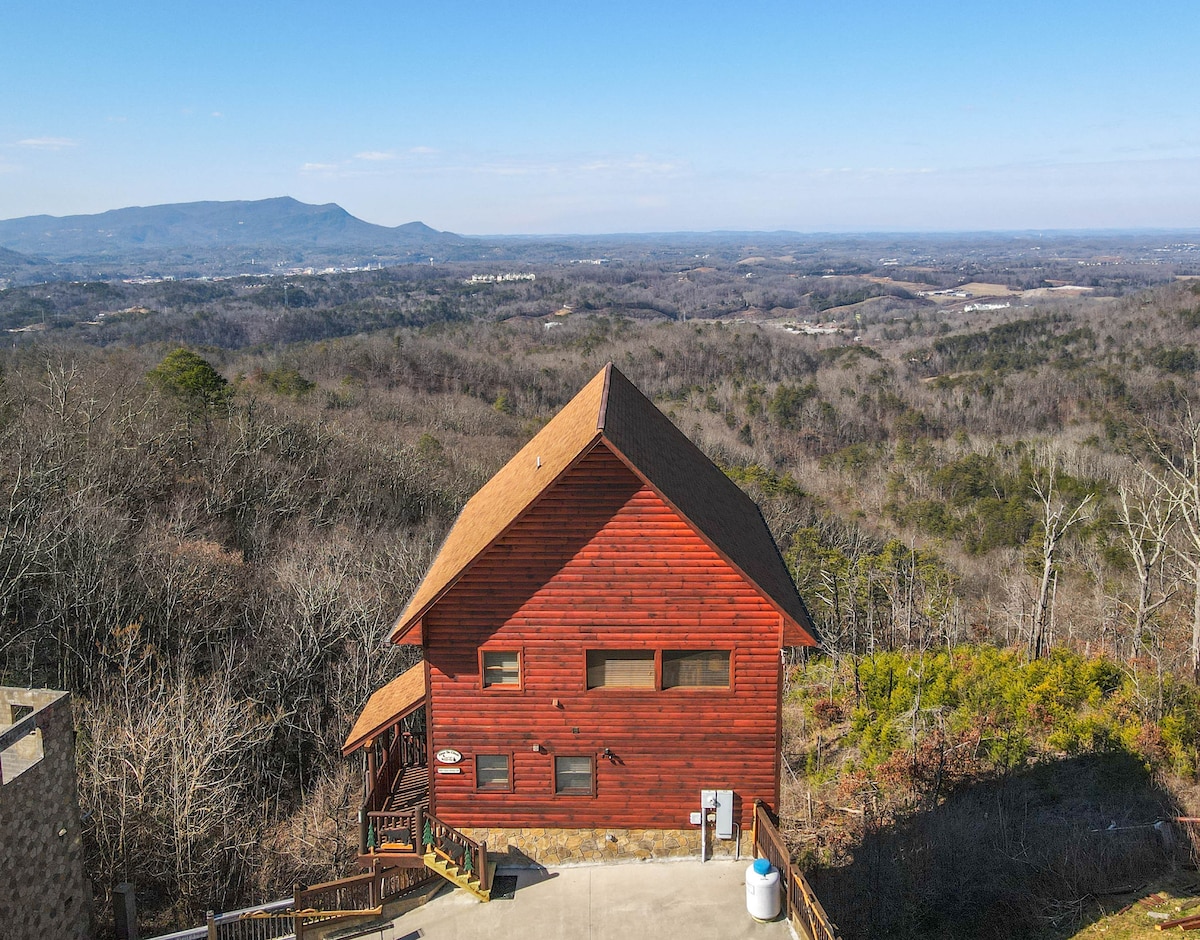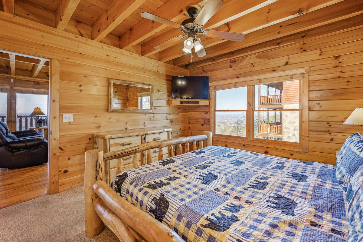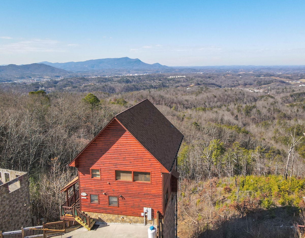 The spaceThe main level consists of the living area, well equipped kitchen with stainless steel appliances, dining area and one of the master bedrooms and bath. Downstairs you will find 2 additional master bedrooms each with private bath. The downstairs bedrooms are connected with a seating area with a desk for any work/school that may be required. The top floor is where you go to play. Power Putt golf arcade game lets everyone compete at Putt Putt golf without leaving the cabin. Also play on the pool table, 60 game retro arcade and darts. Futon in the loft provides extra sleeping for the kids or kids at heart. This floor also has the other master bedroom with a private fireplace and jacuzzi tub. Step out on the top deck and find the porch swing and hot tub looking over Pigeon Forge.