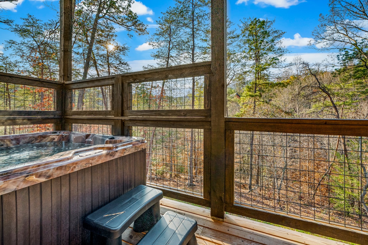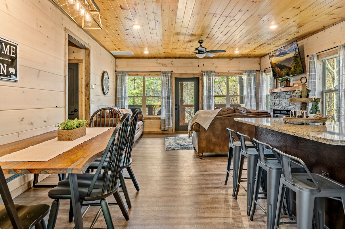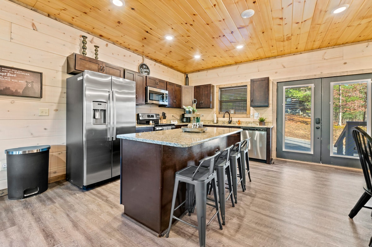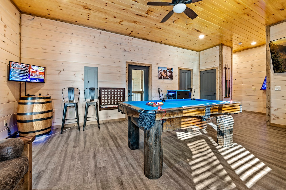 The spaceSplash Haven is a BRAND NEW cabin located just a short drive to all the entertainment the area has to offer. Featuring 3 King Bedrooms (2 of which are Master Suites), bunk room, 2 large decks with Hot Tub, fun game room and the indoor heated saltwater pool there is plenty of fun and space for everyone.