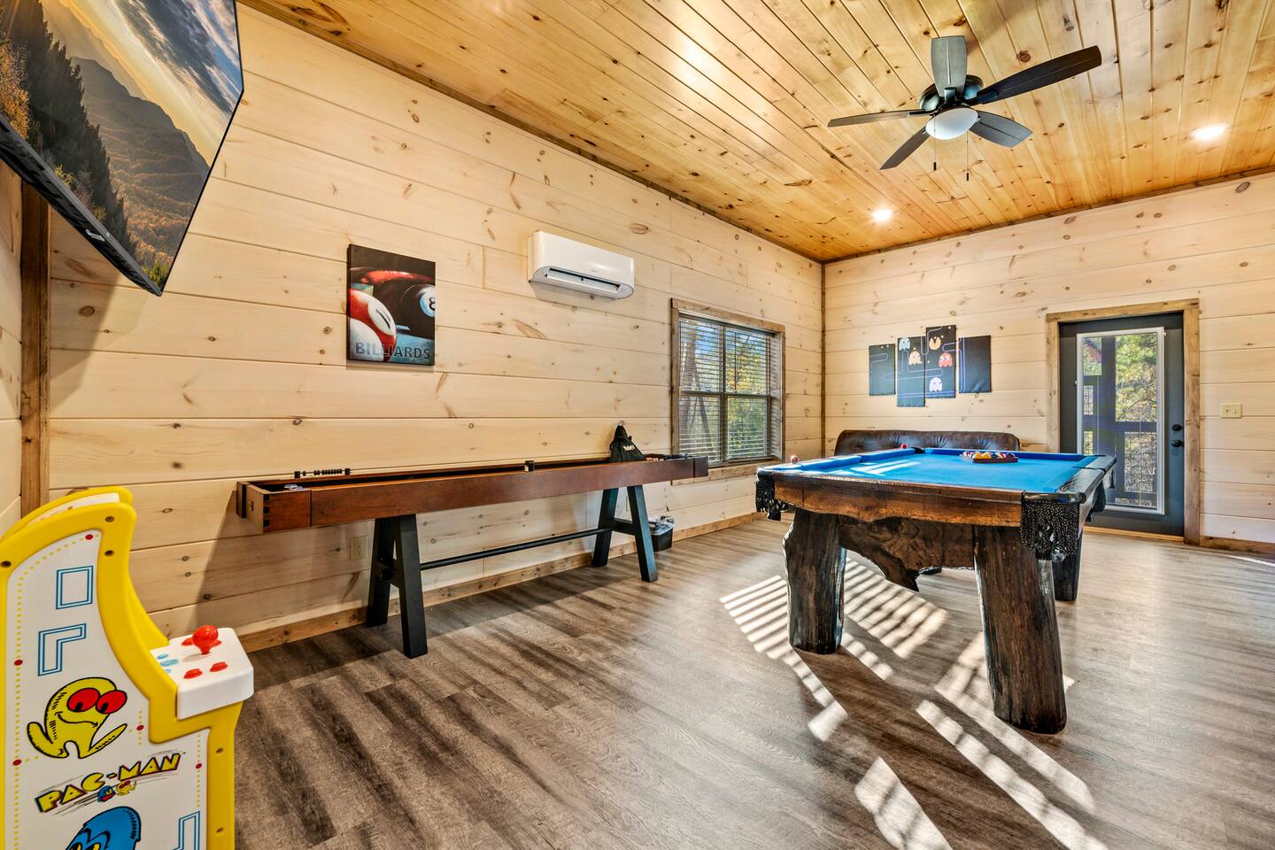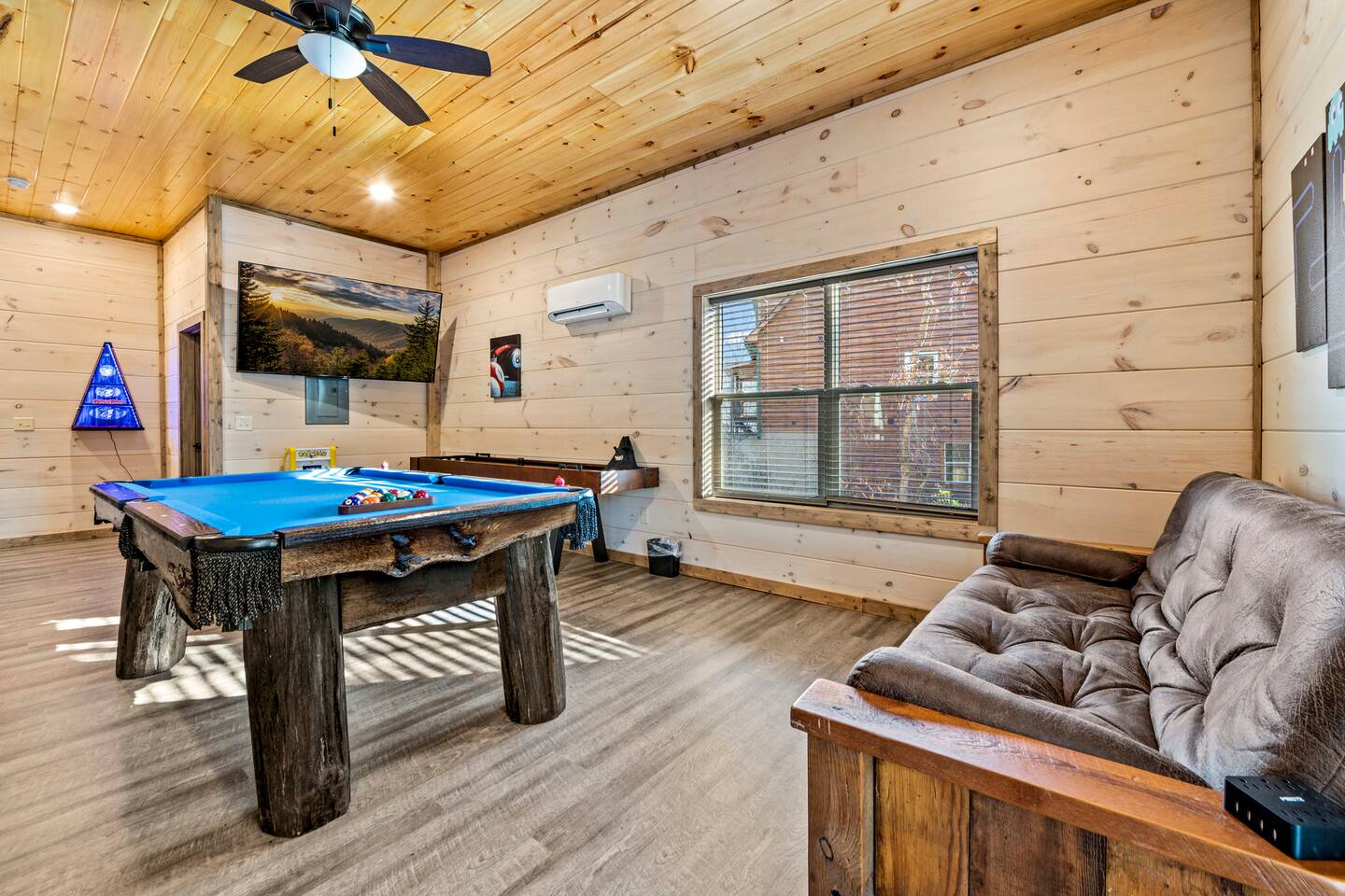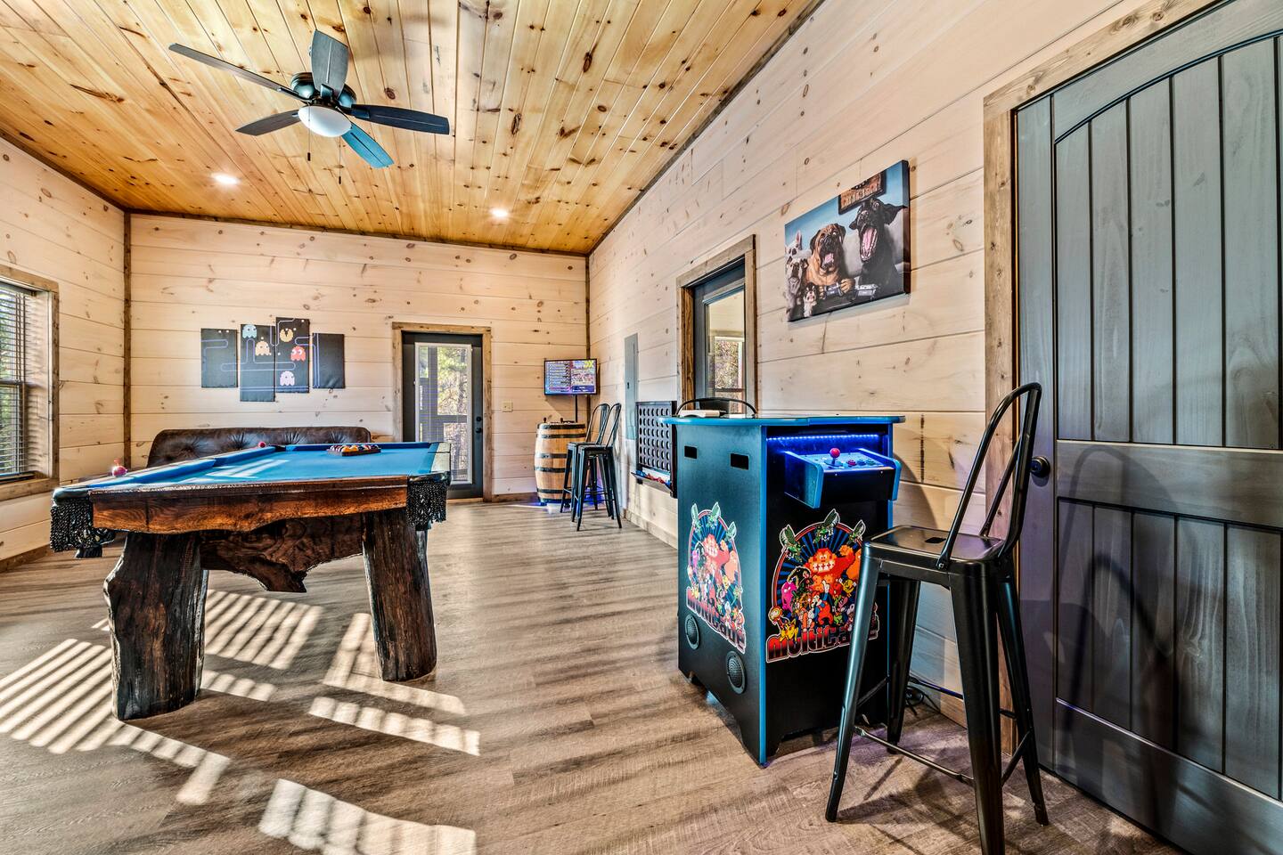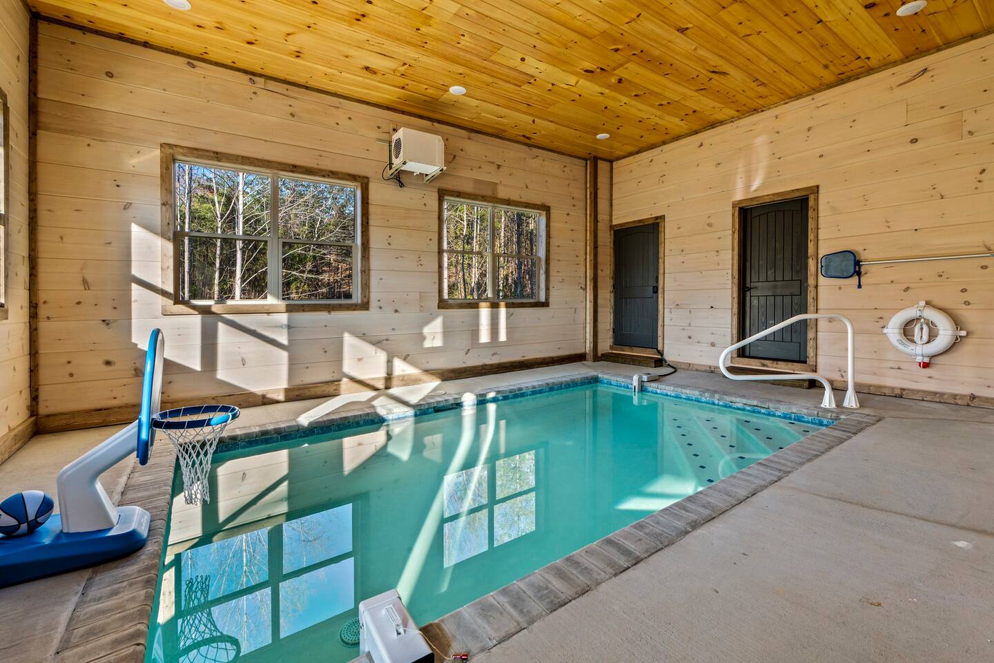 Splash Haven by Southern Bliss Getaways *4 bedrooms; 3 King beds, Queen bunks, Queen Futon *3 Full Baths, 3 1/2 baths *Private Indoor Heated Saltwater Pool *Hot Tub *Pool table, Shuffleboard, 2 Arcade games, Boss Toss *2 full-length decks *Great location; 5 miles from Parkway with easy access