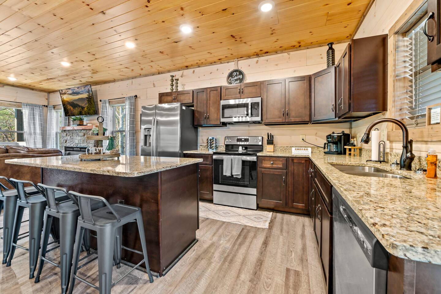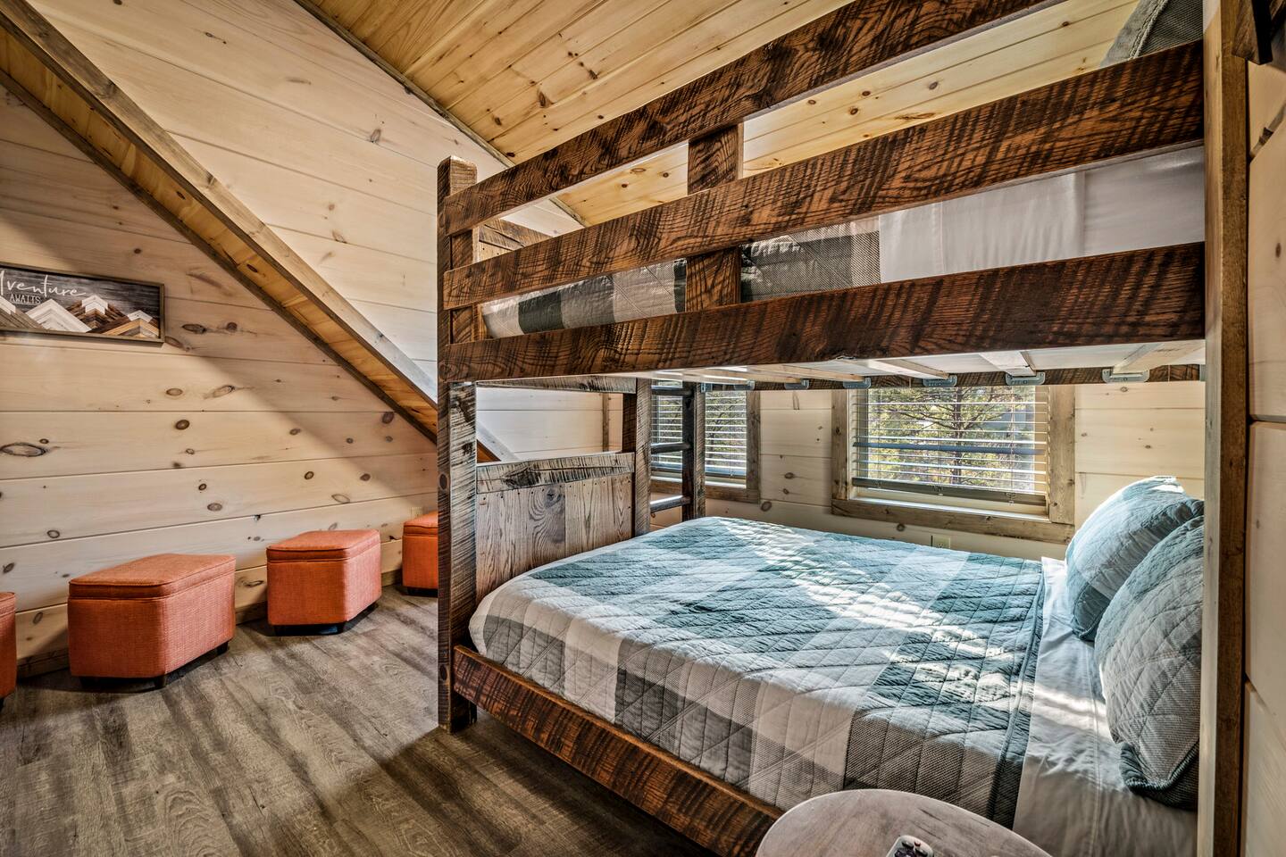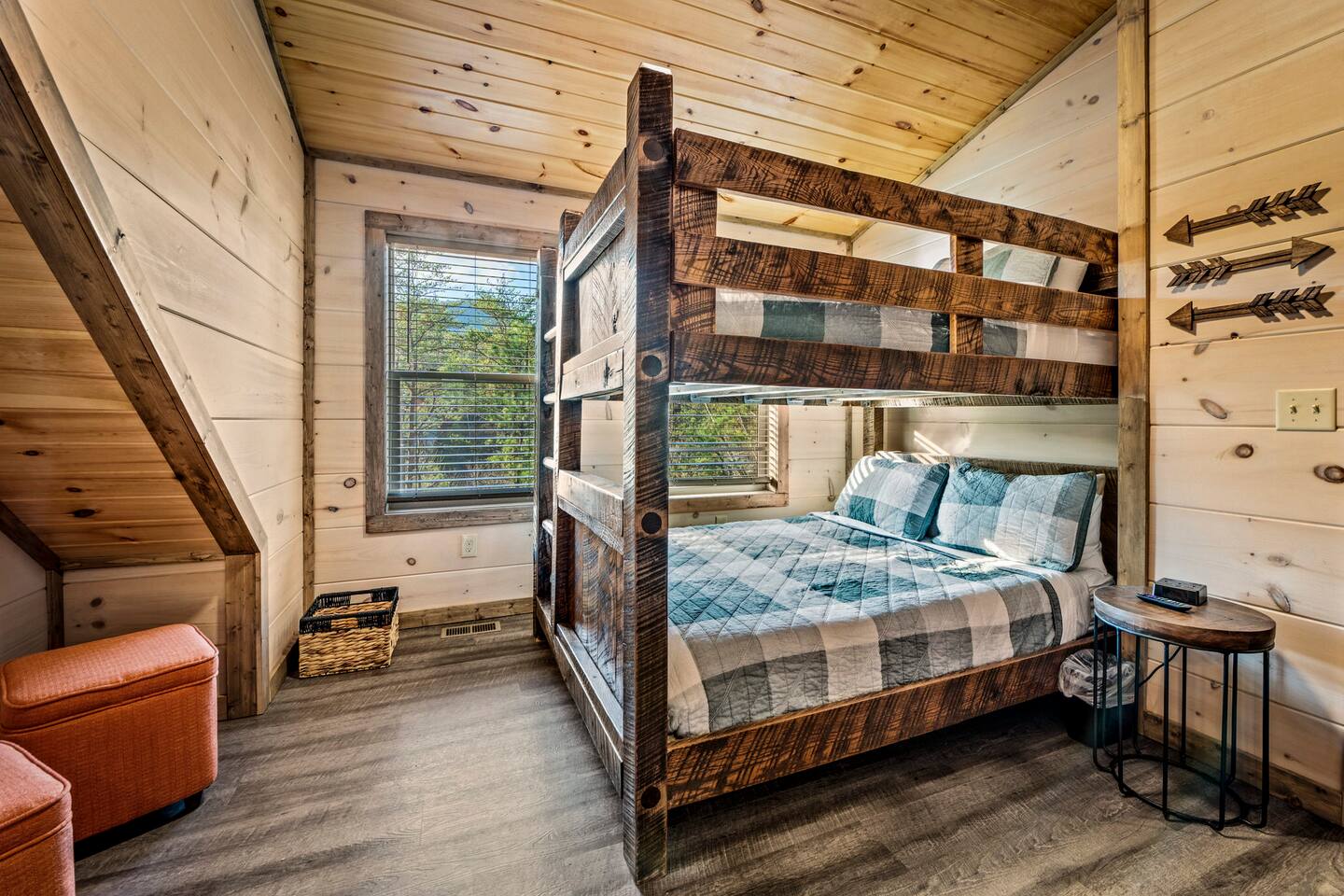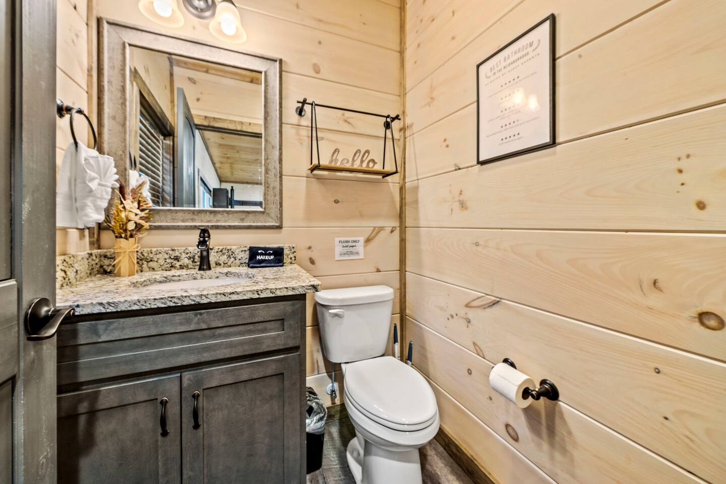 Splash Haven is located just a short drive to all the entertainment the area has to offer. Featuring 3 King Bedrooms (2 of which are Master Suites), bunk room, 2 large decks with Hot Tub, fun game room and the indoor heated saltwater pool there is plenty of fun and space for everyone. LIVING ROOM (Main Level) *Comfortable seating to relax after a day of exploring *Electric fireplace *65" smart TV with Hulu *Access to deck with outdoor seating KITCHEN & DINING (Main Level) *Fully equipped with pots, pans, dishes (including kid friendly), and utensils *Keurig and Drip coffee (BYO Coffee) *Dining table with 4 chairs plus bench and bar seating for 4 SLEEPING ARRANGEMENTS *Bedroom 1 (Main Floor): King Suite with walk-in shower and soaking tub *Bedroom 2 (Upper Floor): King Suite with walk-in shower and soaking tub *Bedroom 3 (Upper Floor): King Bed *Bedroom 4 (Upper Floor): Bunk Room, Queen over Queen *Game Room (Lower Floor): Queen Futon BATHROOMS *3 Full: Suites plus jack-n-jill shared by bedrooms 3&4 *3 Half: Main Floor, Game Room, Pool Room GAME ROOM *Pool Table *Shuffle Board *Upright Arcade game with 3000 games *Pub table Arcade with 60 games *Boss Toss (indoor cornhole type game) *75" smart tv *Queen Size Futon POOL *10x16 pool *Saltwater *Heated to 85 degrees year round (can't raise temp due to sanitary reasons) OTHER *Full size washer/dryer *Smart TVs in all bedrooms *2 covered decks with seating and Hot Tub (Lower Level)