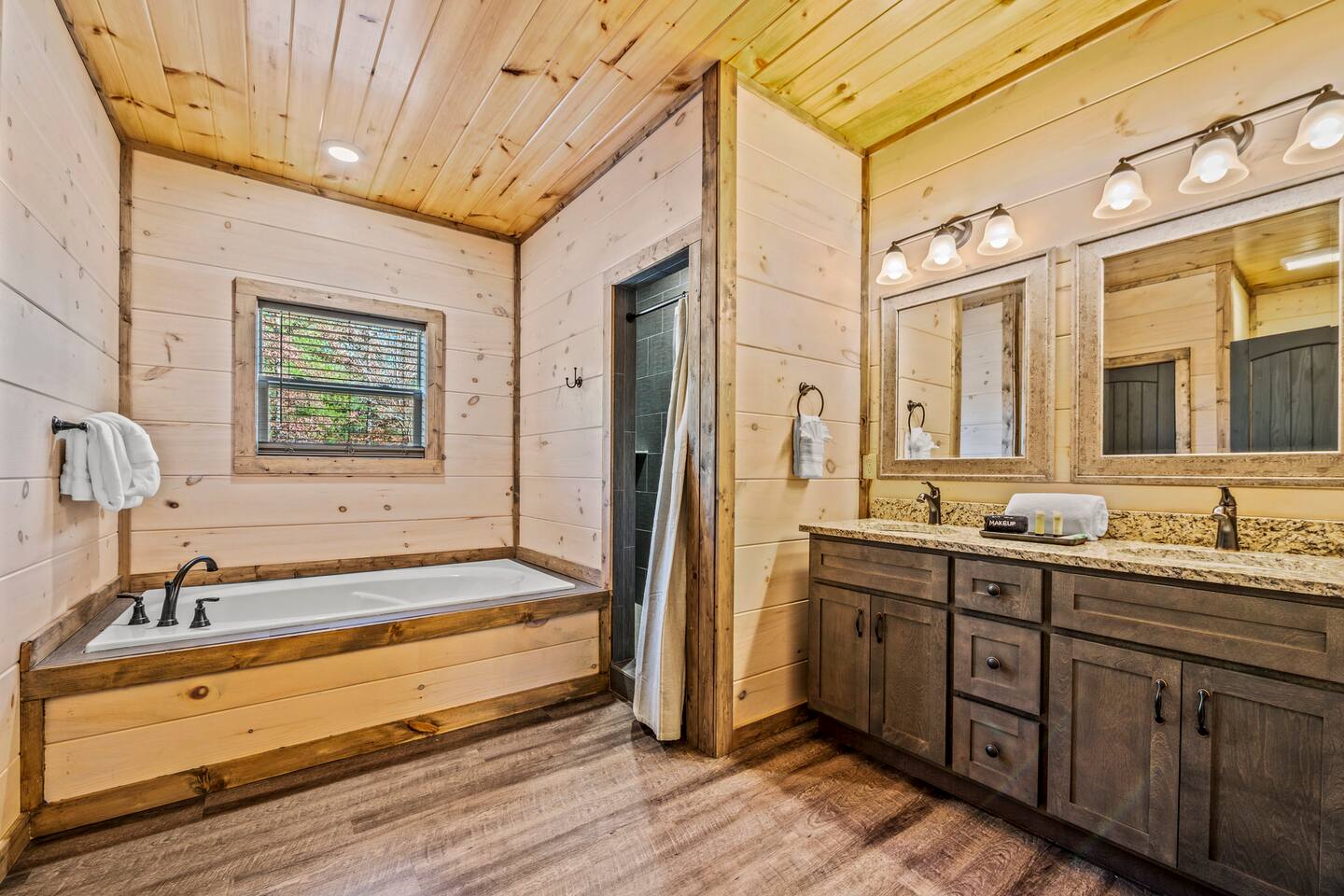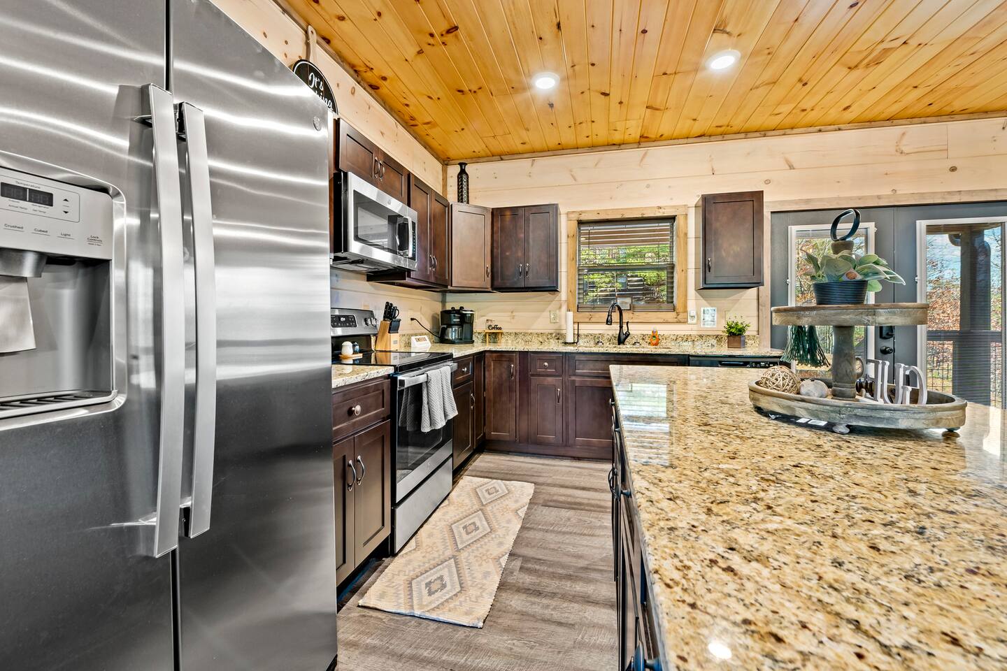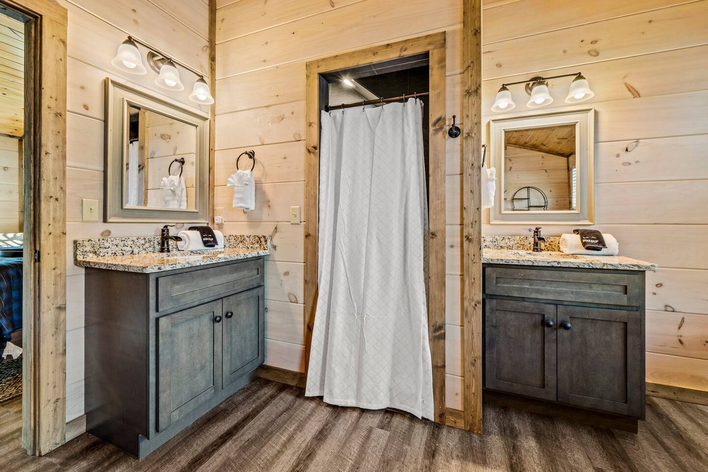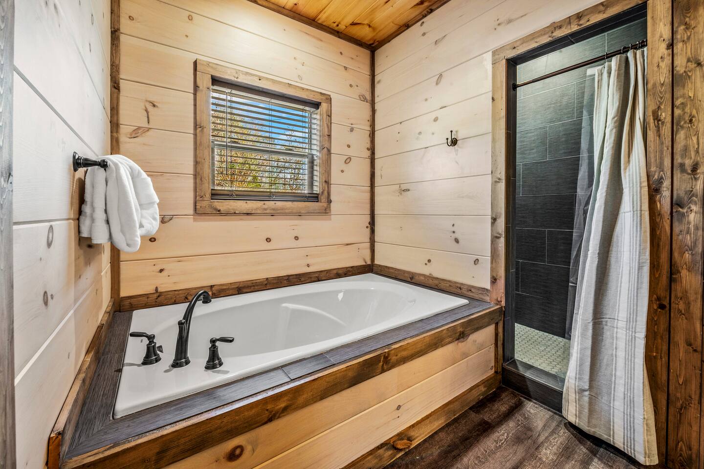Splash Haven is located just a short drive to all the entertainment the area has to offer. Featuring 3 King Bedrooms (2 of which are Master Suites), bunk room, 2 large decks with Hot Tub, fun game room and the indoor heated saltwater pool there is plenty of fun and space for everyone. LIVING ROOM (Main Level) *Comfortable seating to relax after a day of exploring *Electric fireplace *65" smart TV with Hulu *Access to deck with outdoor seating KITCHEN & DINING (Main Level) *Fully equipped with pots, pans, dishes (including kid friendly), and utensils *Keurig and Drip coffee (BYO Coffee) *Dining table with 4 chairs plus bench and bar seating for 4 SLEEPING ARRANGEMENTS *Bedroom 1 (Main Floor): King Suite with walk-in shower and soaking tub *Bedroom 2 (Upper Floor): King Suite with walk-in shower and soaking tub *Bedroom 3 (Upper Floor): King Bed *Bedroom 4 (Upper Floor): Bunk Room, Queen over Queen *Game Room (Lower Floor): Queen Futon BATHROOMS *3 Full: Suites plus jack-n-jill shared by bedrooms 3&4 *3 Half: Main Floor, Game Room, Pool Room GAME ROOM *Pool Table *Shuffle Board *Upright Arcade game with 3000 games *Pub table Arcade with 60 games *Boss Toss (indoor cornhole type game) *75" smart tv *Queen Size Futon POOL *10x16 pool *Saltwater *Heated to 85 degrees year round (can't raise temp due to sanitary reasons) OTHER *Full size washer/dryer *Smart TVs in all bedrooms *2 covered decks with seating and Hot Tub (Lower Level)