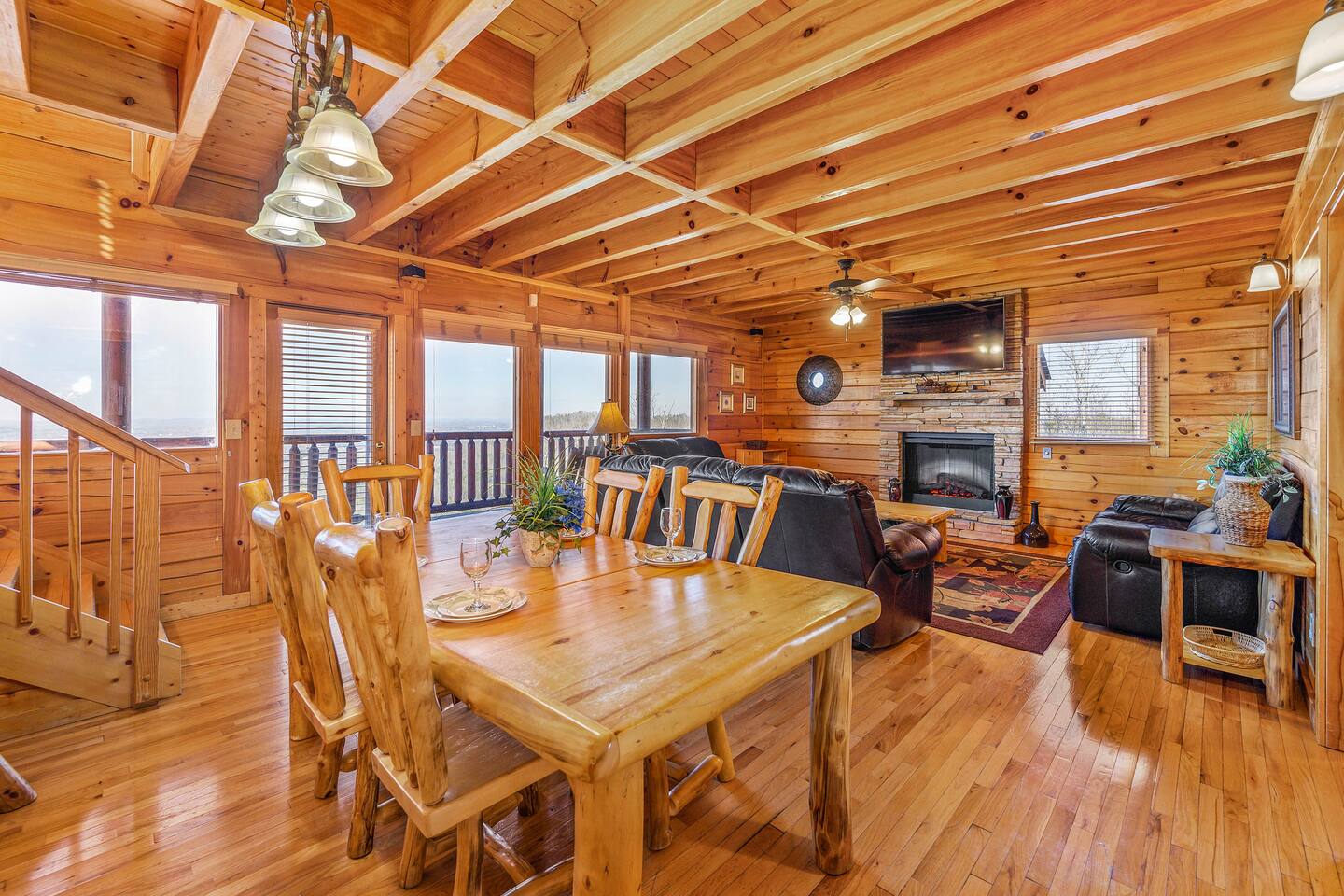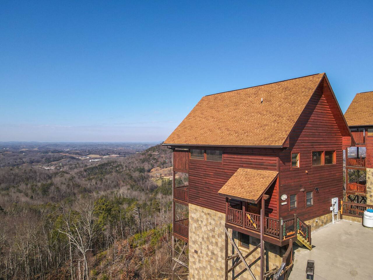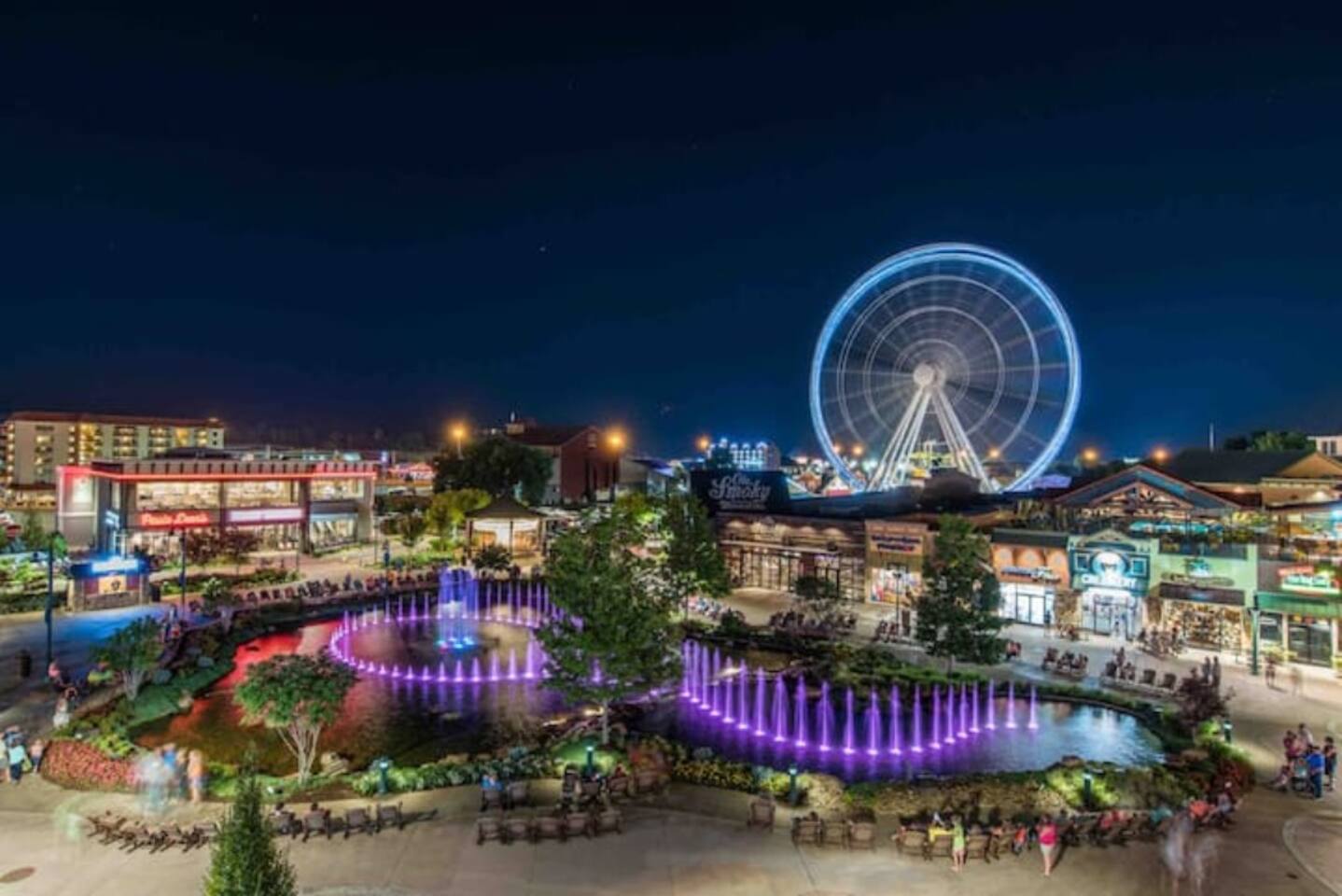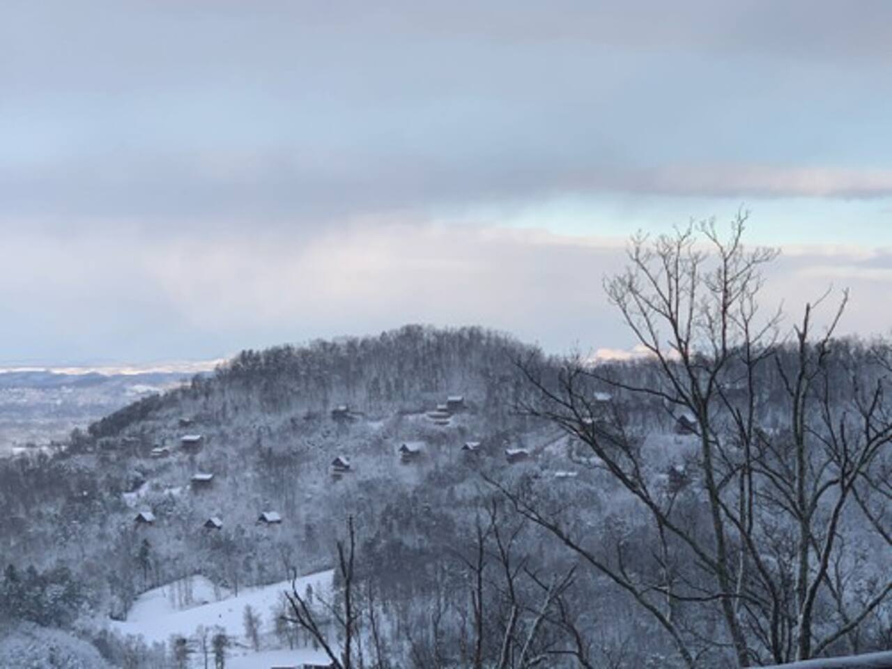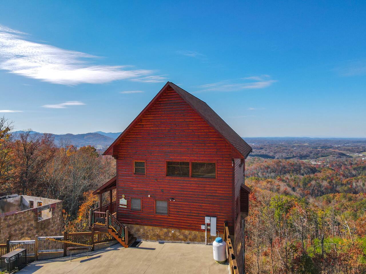 The main level consists of the living area, well equipped kitchen with stainless steel appliances, dining area and one of the master bedrooms and bath. Downstairs you will find 2 additional master bedrooms each with private bath. The downstairs bedrooms are connected with a seating area with a desk for any work/school that may be required. The top floor is where you go to play. Power Putt golf arcade game lets everyone compete at Putt Putt golf without leaving the cabin. Also play on the pool table, 60 game retro arcade and darts. Futon in the loft provides extra sleeping for the kids or kids at heart. This floor also has the other master bedroom with a private fireplace and jacuzzi tub. Step out on the top deck and find the porch swing and hot tub looking over Pigeon Forge. The resort has easy to navigate roads, a pool (during summer season), playground and a picnic area. This cabin also has: *Breathtaking views *Parking for 4 cars *6 Smart TVs *Blazing fast WiFi *Quality linens *Washer/Dryer *Charcoal Grill.