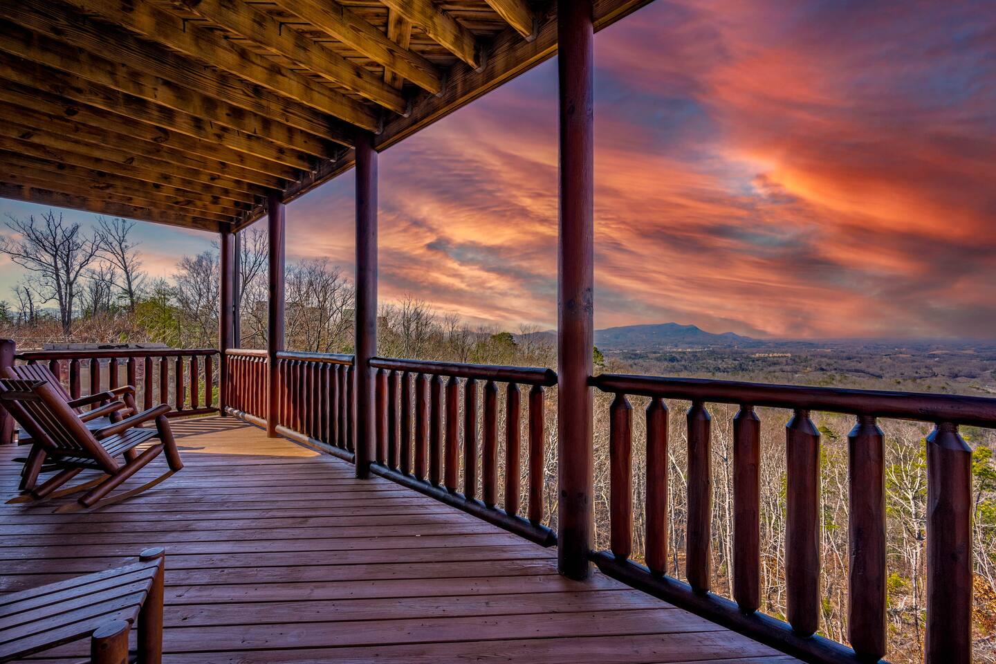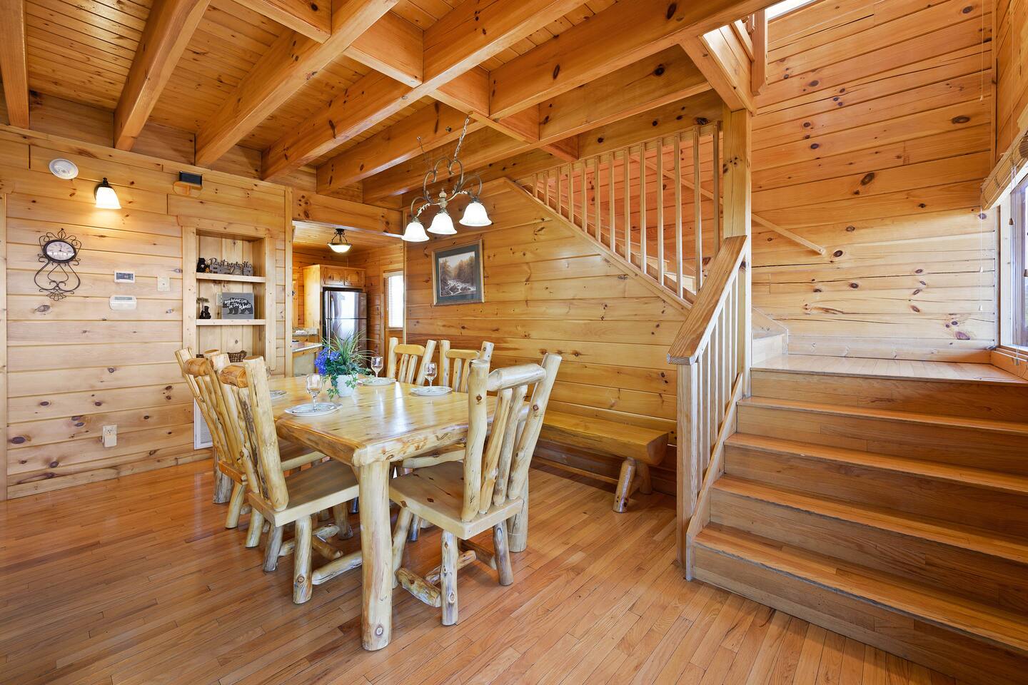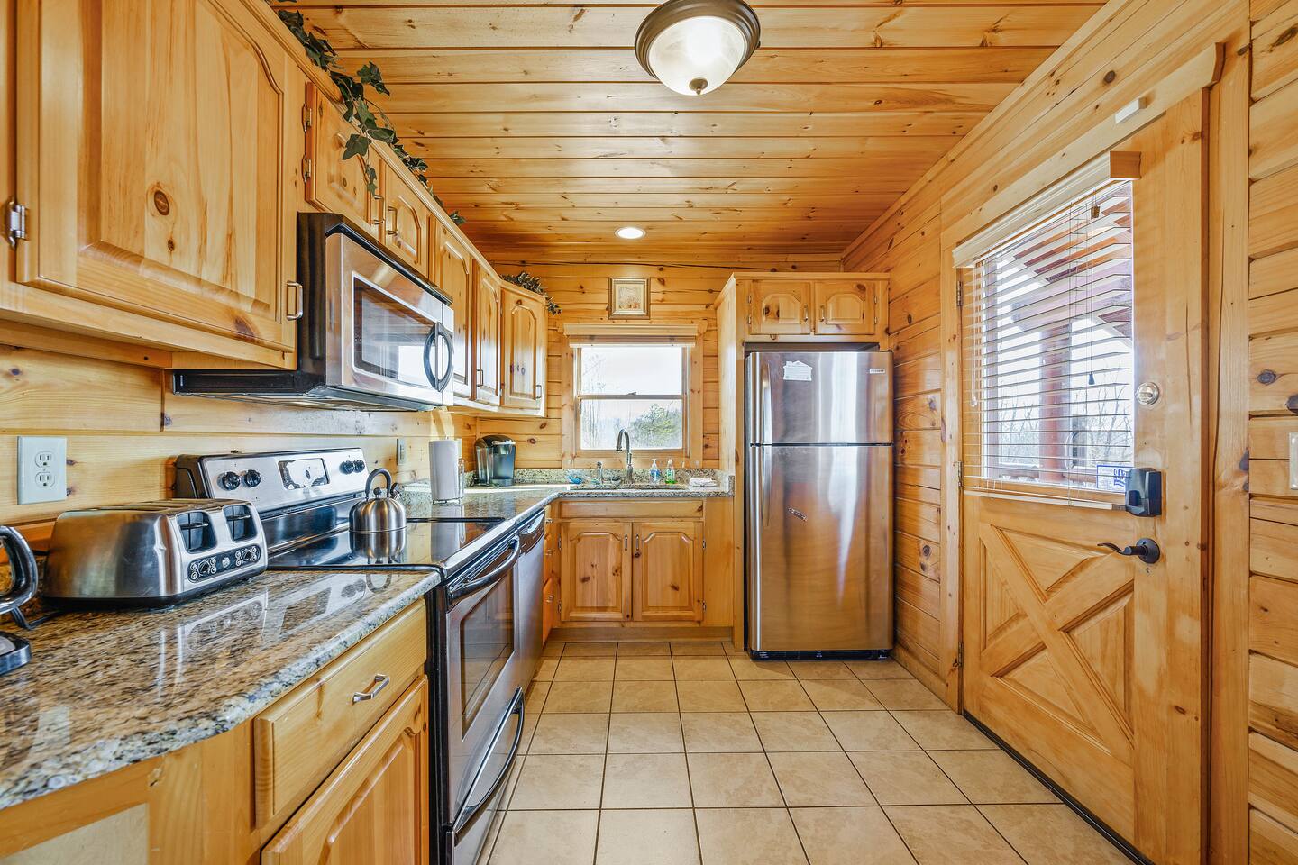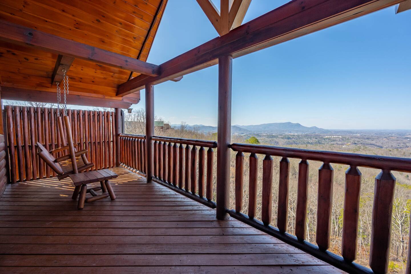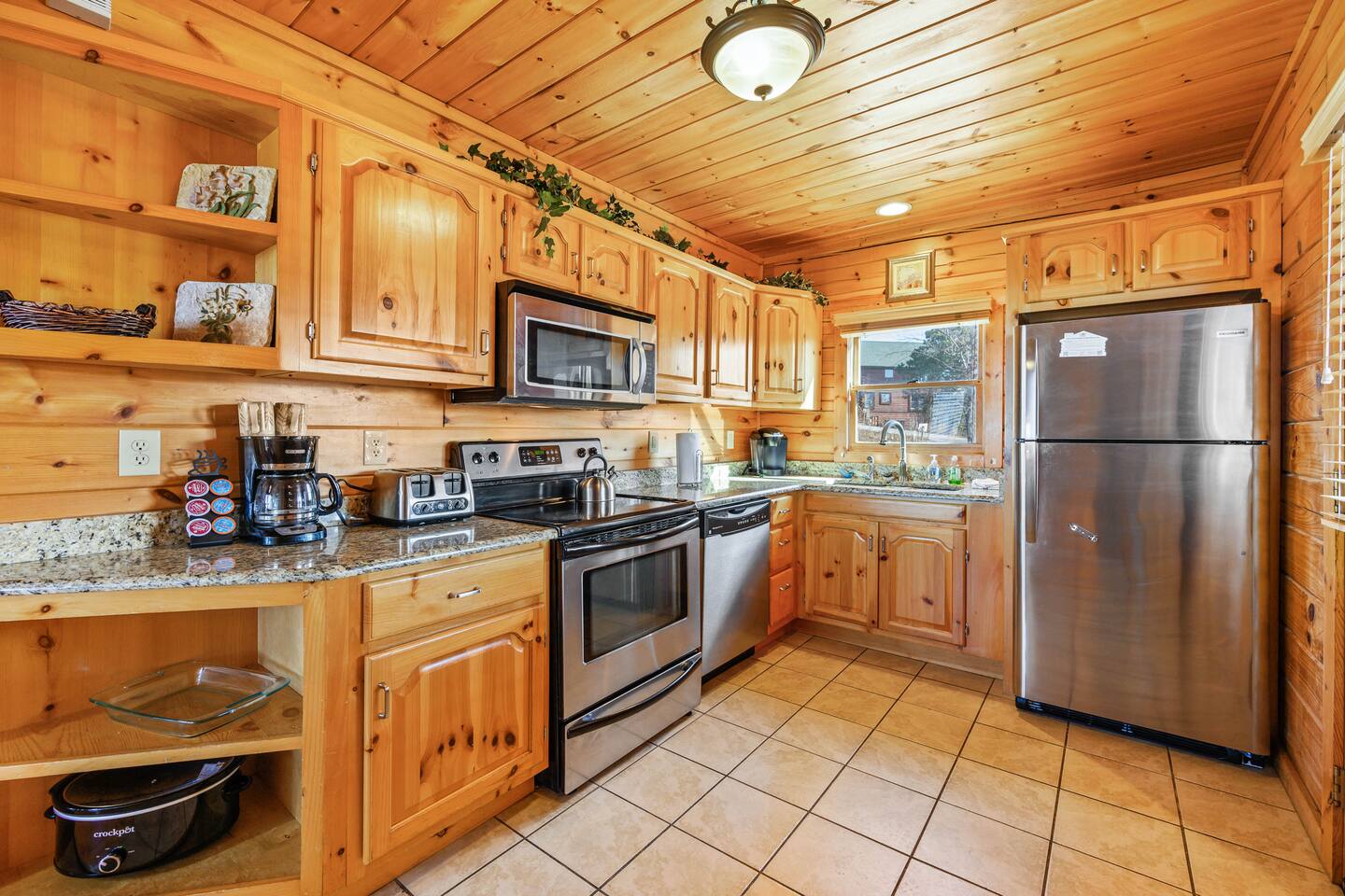 The main level consists of the living area, well equipped kitchen with stainless steel appliances, dining area and one of the master bedrooms and bath. Downstairs you will find 2 additional master bedrooms each with private bath. The downstairs bedrooms are connected with a seating area with a desk for any work/school that may be required. The top floor is where you go to play. Power Putt golf arcade game lets everyone compete at Putt Putt golf without leaving the cabin. Also play on the pool table, 60 game retro arcade and darts. Futon in the loft provides extra sleeping for the kids or kids at heart. This floor also has the other master bedroom with a private fireplace and jacuzzi tub. Step out on the top deck and find the porch swing and hot tub looking over Pigeon Forge. The resort has easy to navigate roads, a pool (during summer season), playground and a picnic area. This cabin also has: *Breathtaking views *Parking for 4 cars *6 Smart TVs *Blazing fast WiFi *Quality linens *Washer/Dryer *Charcoal Grill.