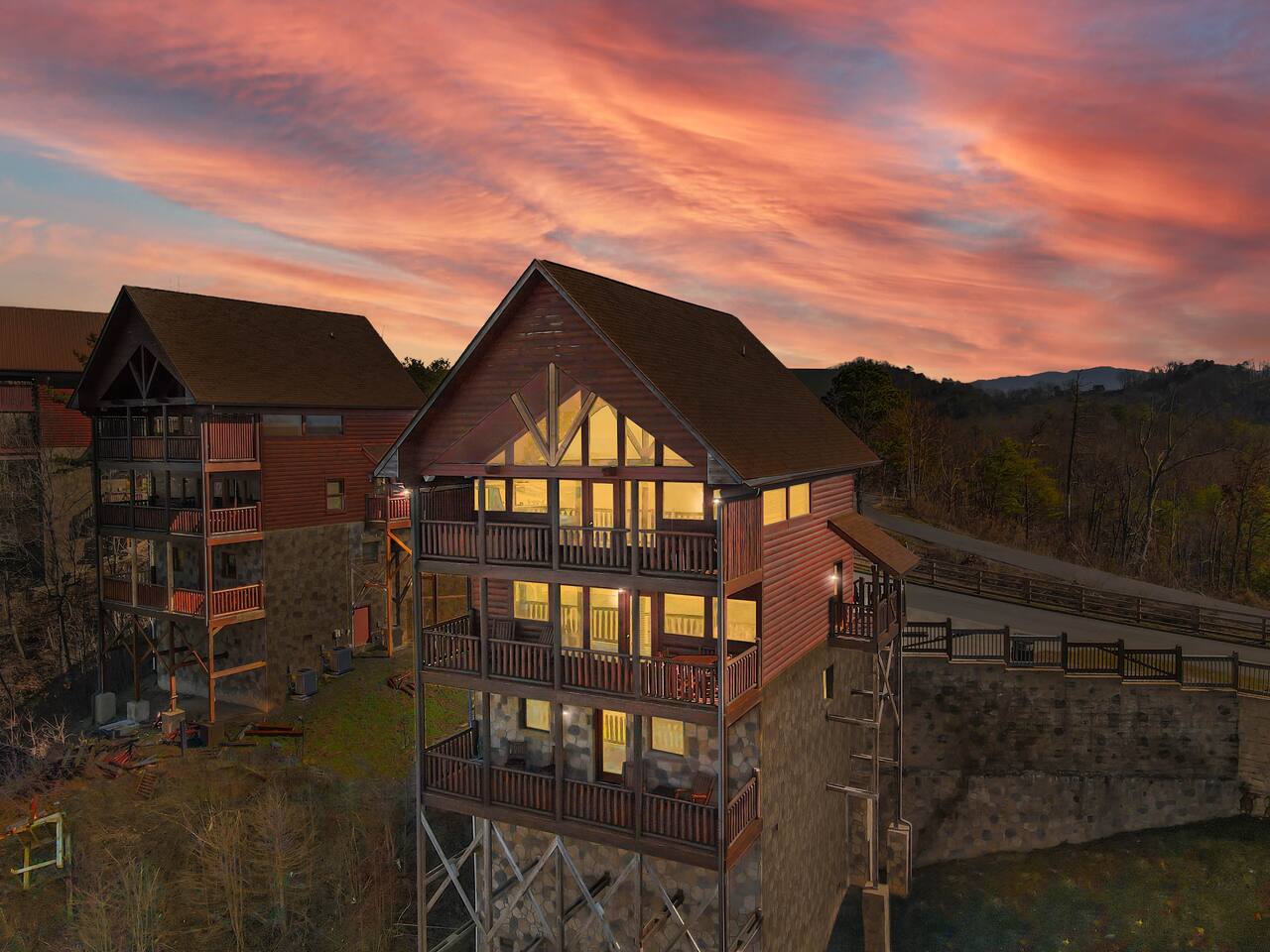 Above the Clouds by Southern Bliss Getaways Above the Clouds is a 4 bedroom cabin located within minutes of all the action Pigeon Forge has to offer. Cabin is located less than 4 miles from the Parkway and 5 miles from Dollywood, yet it feels like you're away from it all at the top of this resort community. Unwind after a fun-filled day playing and laughing in the game room or relax on the top deck with a porch swing and hot tub looking over the city lights of Pigeon Forge.